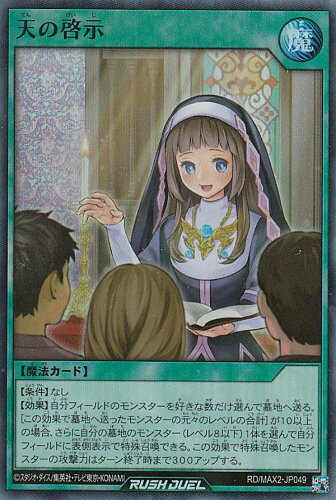 自分フィールド上にレベル7以上モンスターが複数展開されているのであれば、最上級モンスター1体と「ハイヒー・プリーステス」を「天の啓示」で墓地へ送れば、別のレベル8以下のモンスターに置き換えることができる。